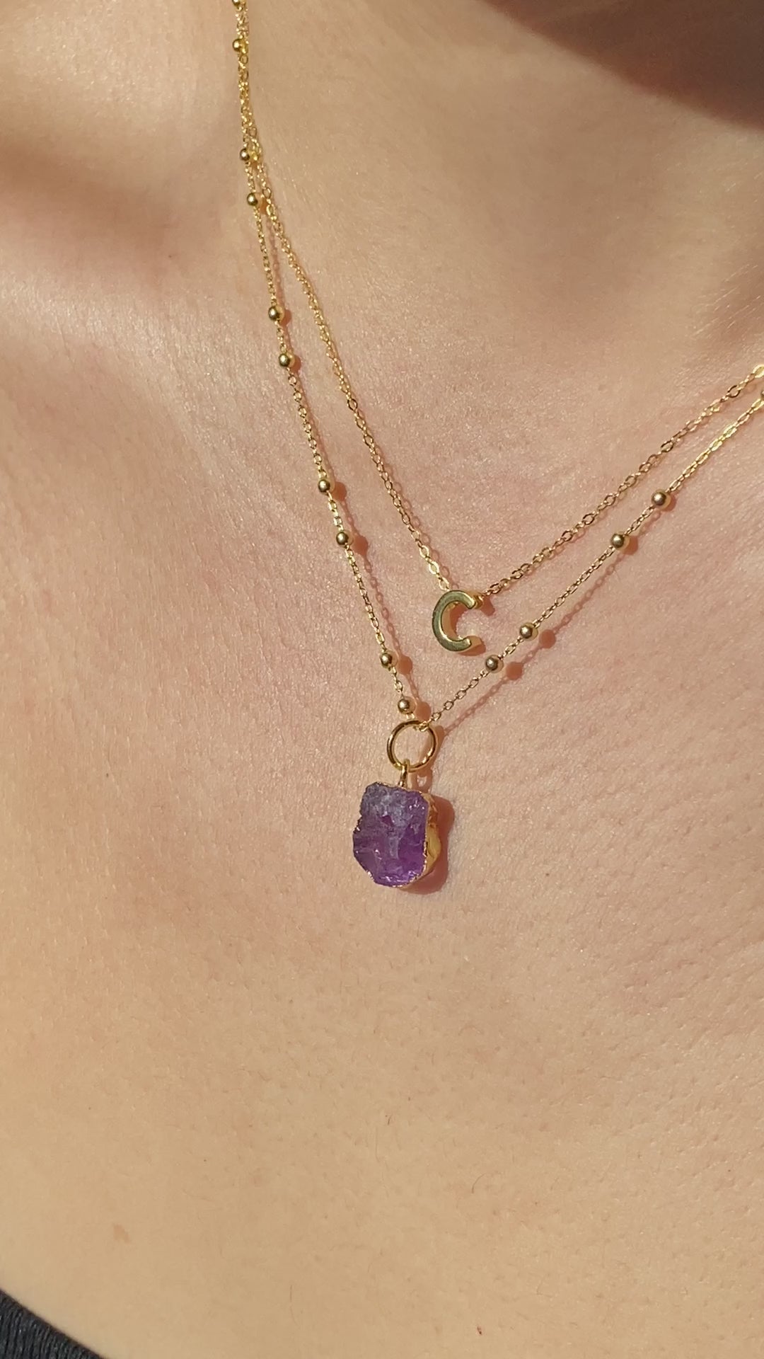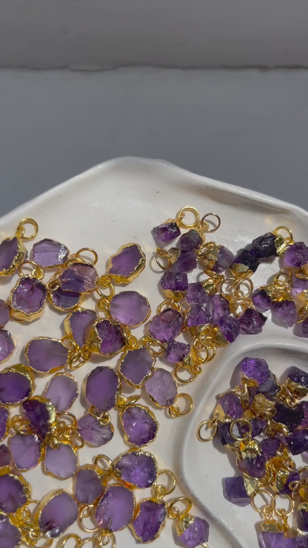 - 24k gold plated or rhodium plated raw cut Amethyst.