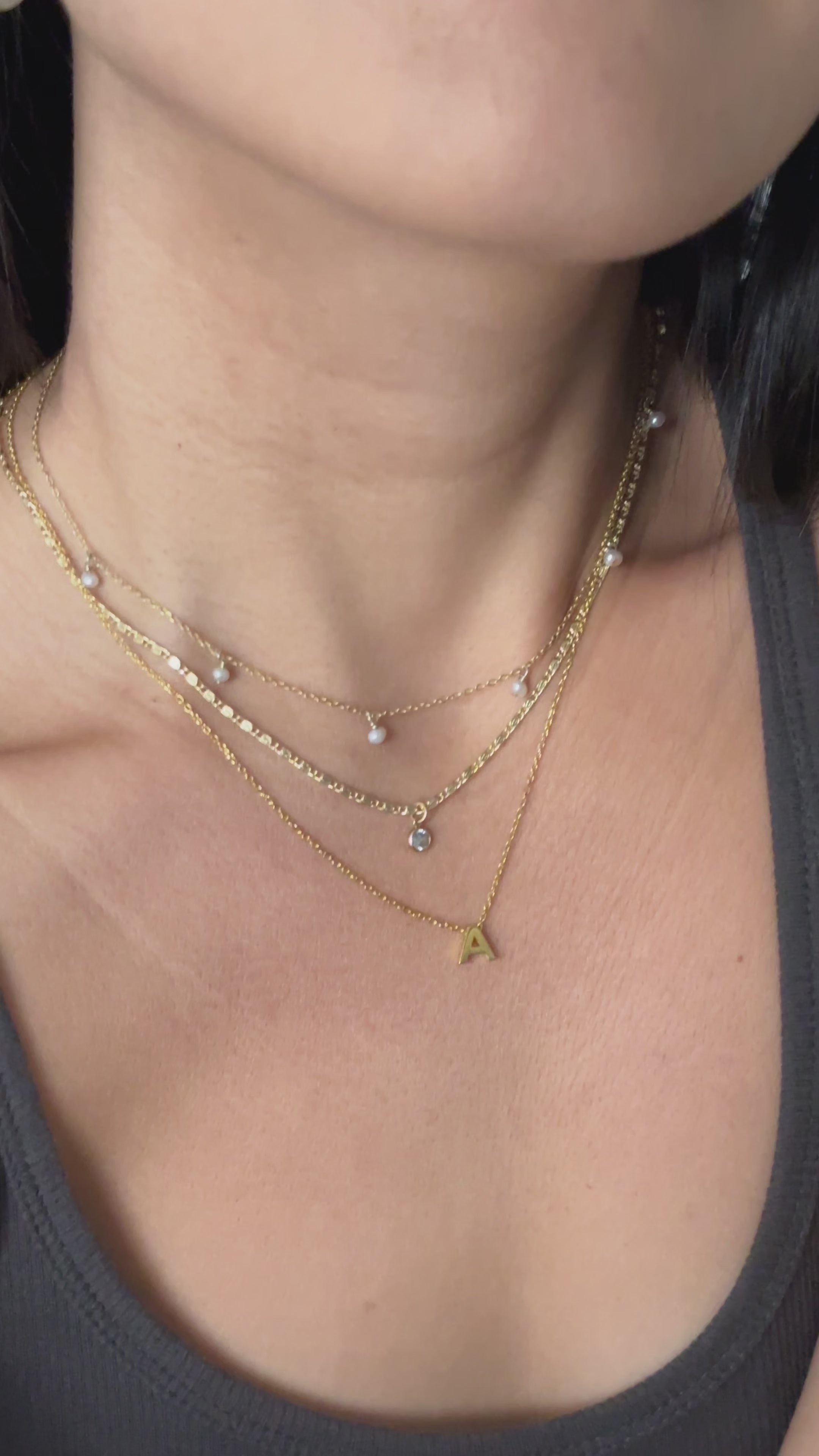 Kimberly Pearl Choker + CZ Necklace + Alphabet Necklace Set