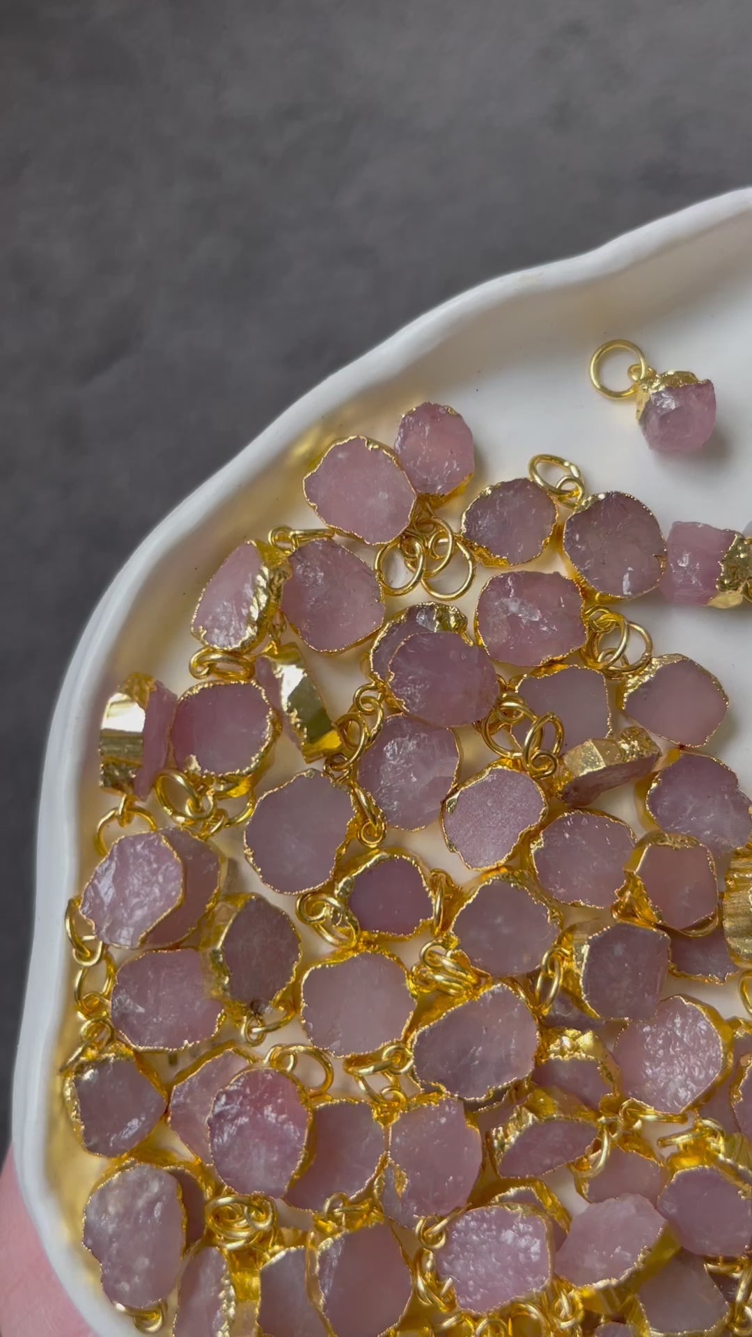 24k gold plated or rhodium plated raw cut Rose Quartz. -