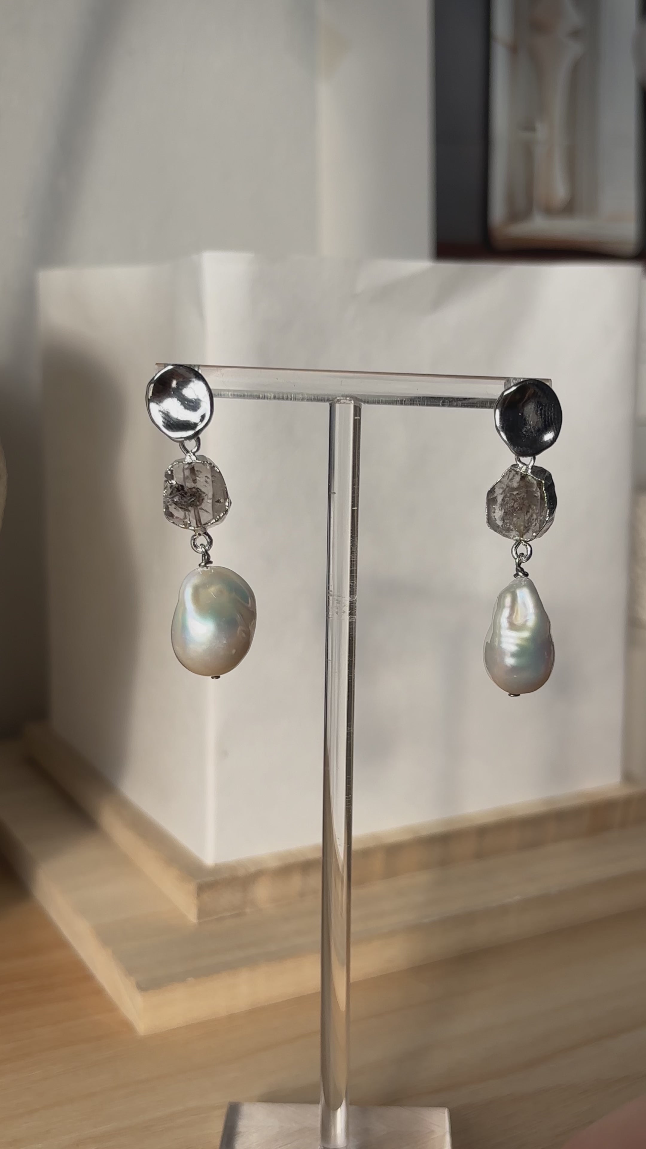 SAMPLE - April | Herkimer Diamond Birthstones x Pearls Earrings