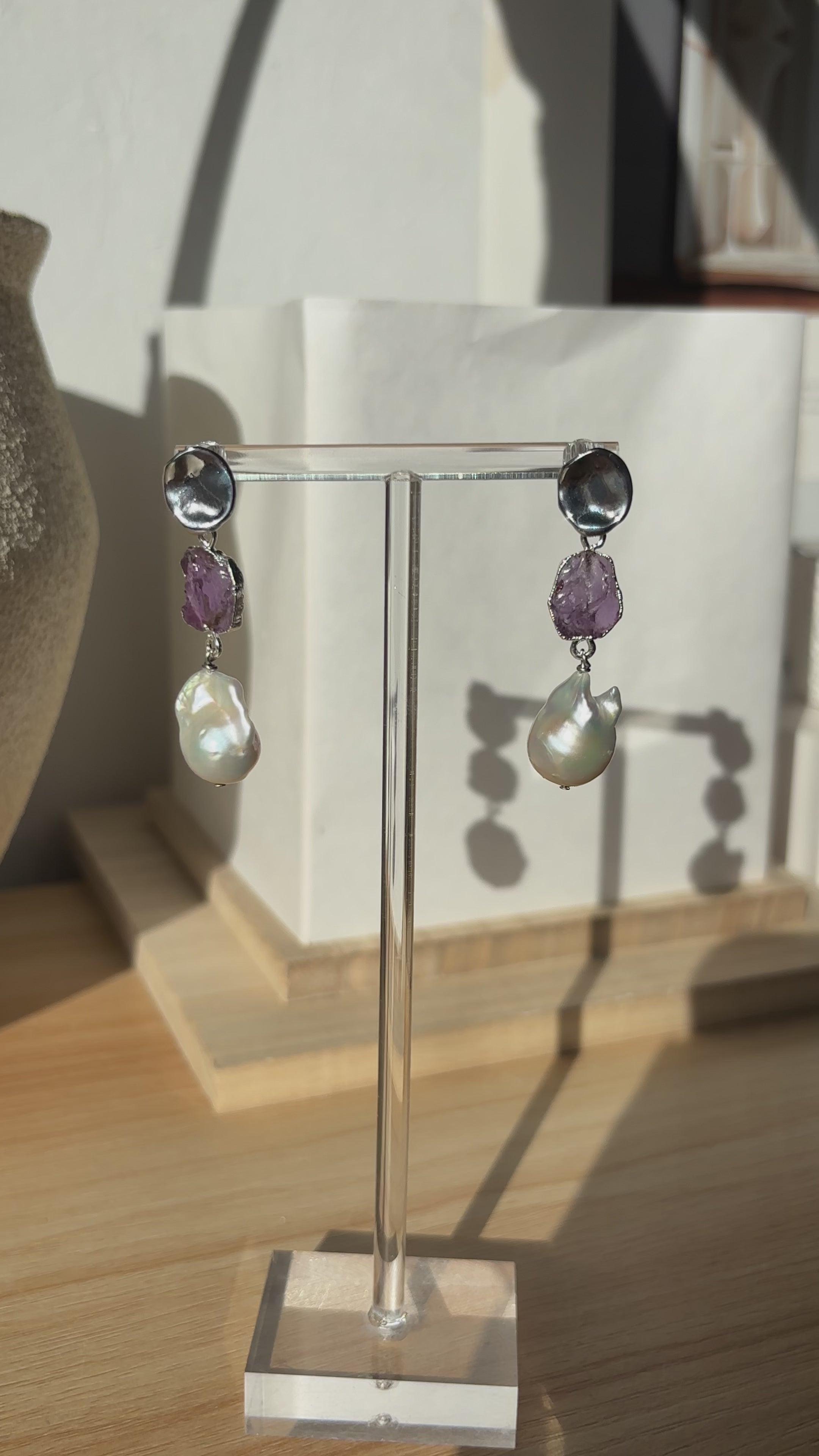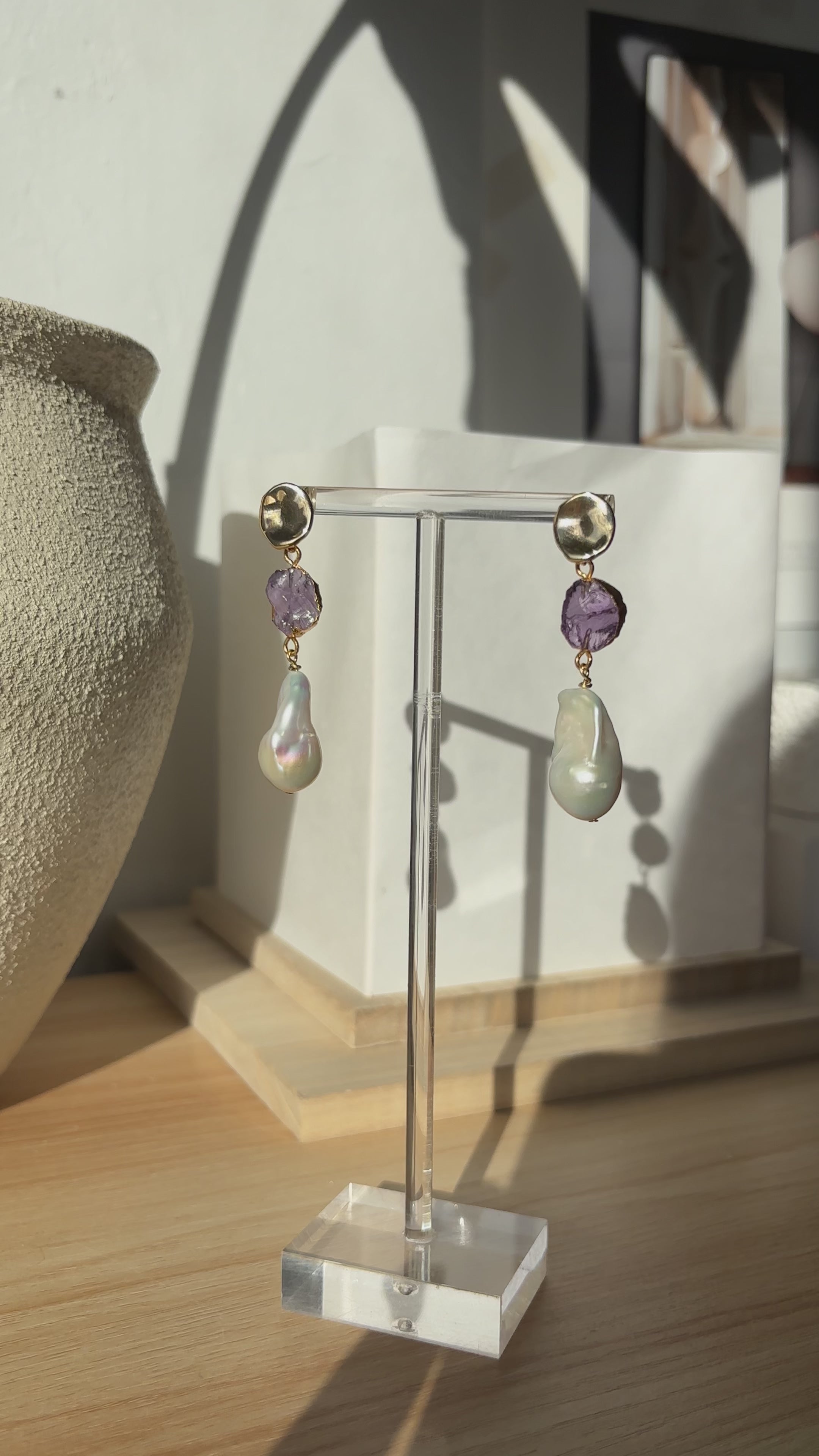 SAMPLE - Feb | Amethyst Birthstones x Pearls Earrings